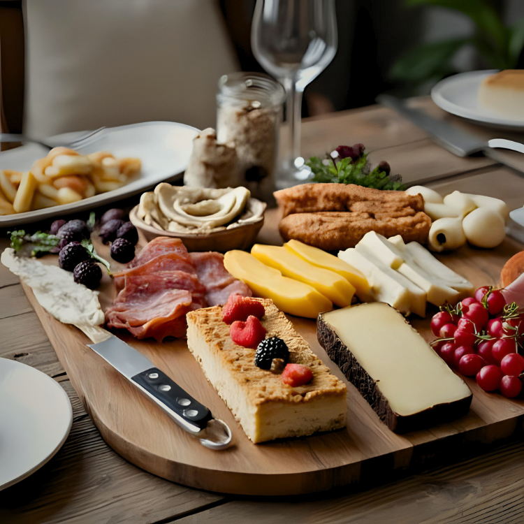 Comparte entre amigos, con quesos, embutidos, mariscos y postres.